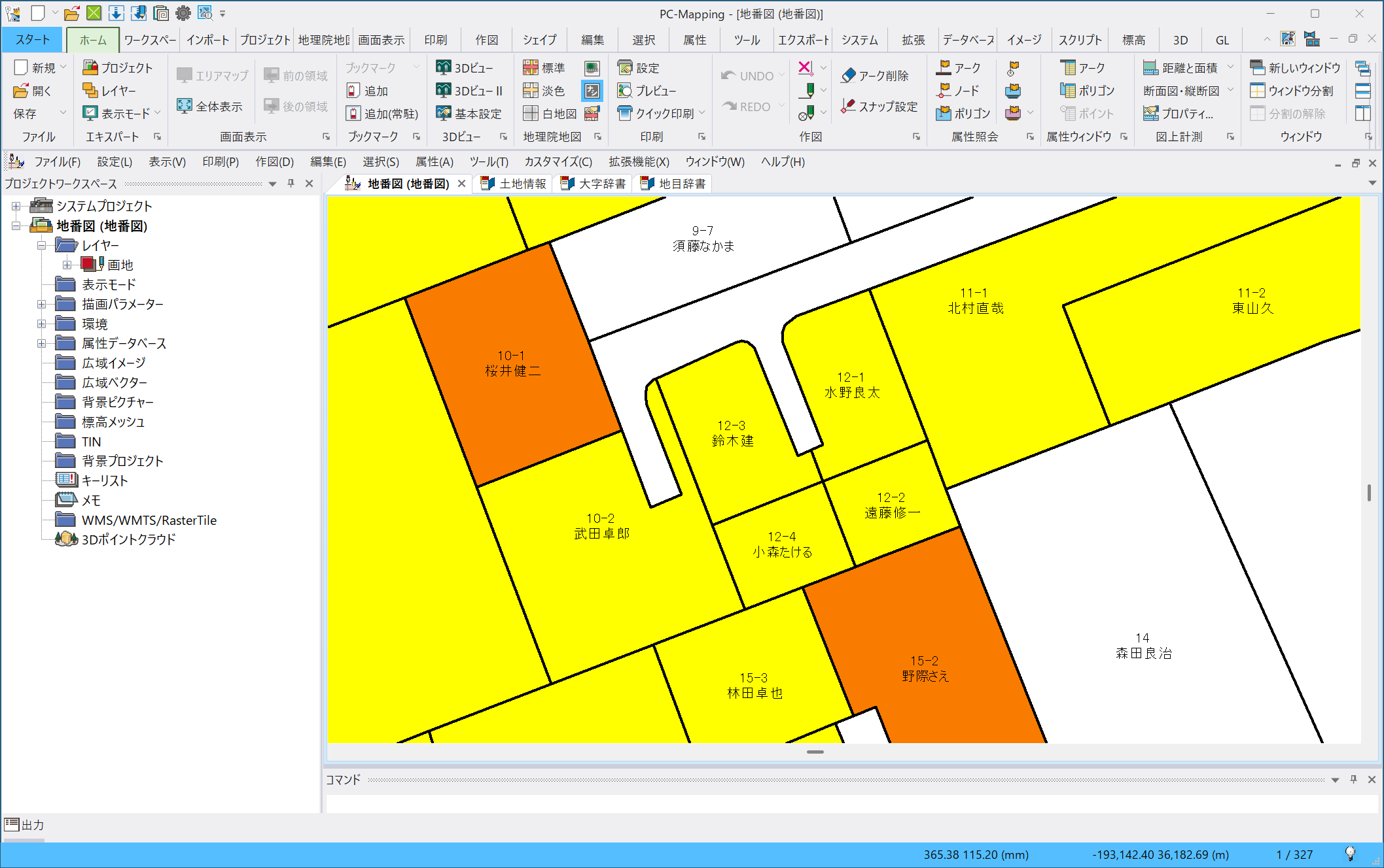 ポリゴンの属性表示にレイアウトビューを設定しています([レイヤーエキスパート]-[キーリスト]パネルで確認して下さい)。