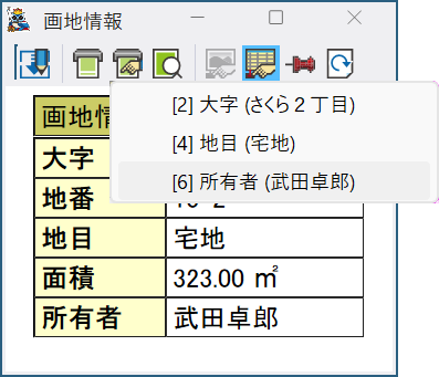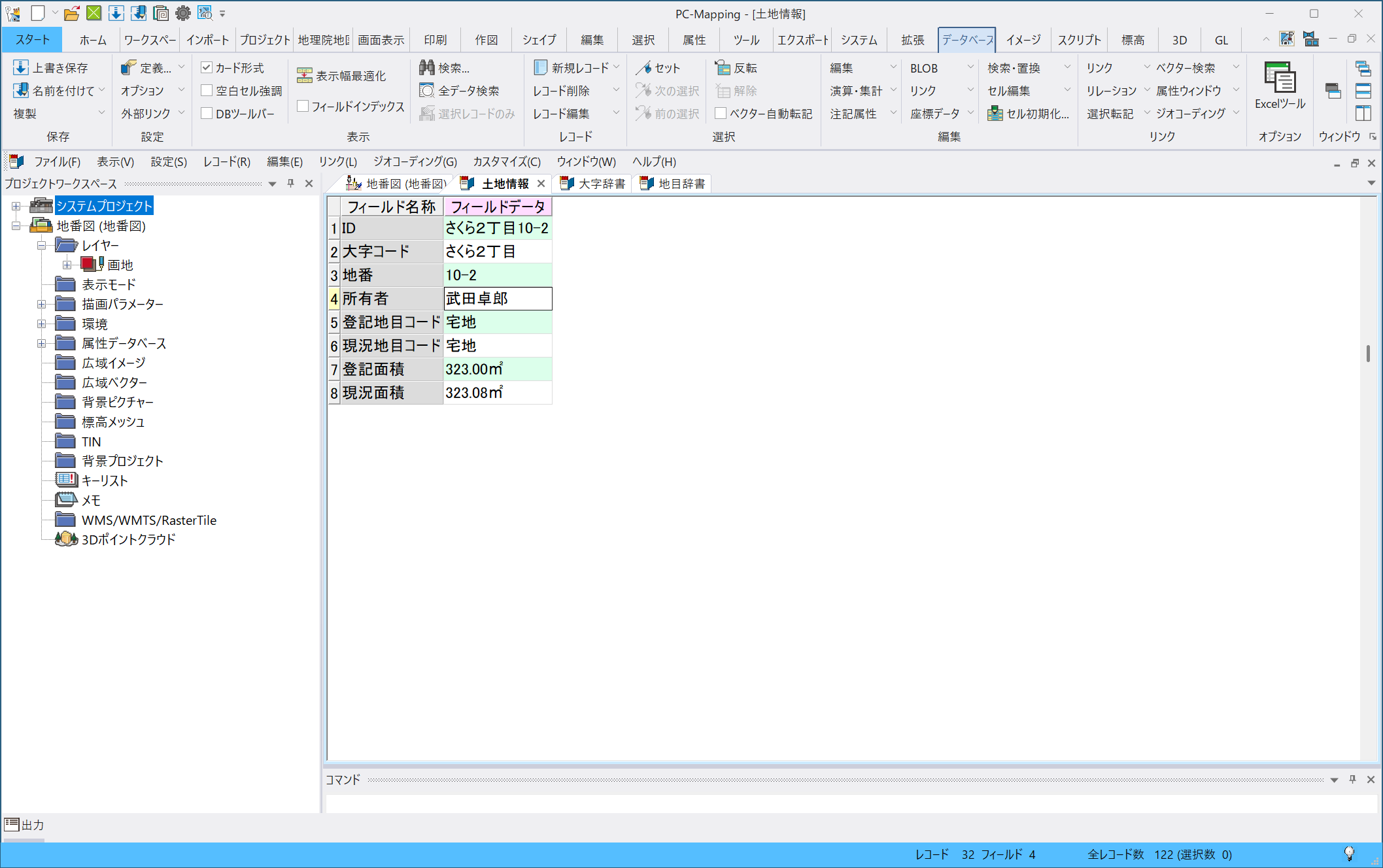 - 「土地情報」データベースをアクティブにし、[データベース]-[設定]-[定義]を実行します。