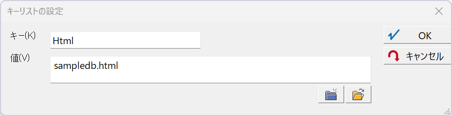 レイアウトビューの元となるHTMLファイル「sampledb.html」をベクタの時と同じように「キー」と「値」を入力します。