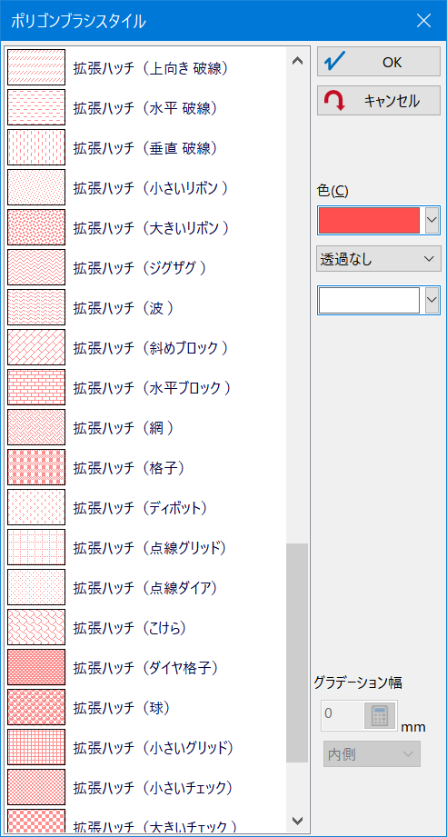 A第1色設定ボタンの下から"サーフェイスグラディアント"を選択し、第2色を設定